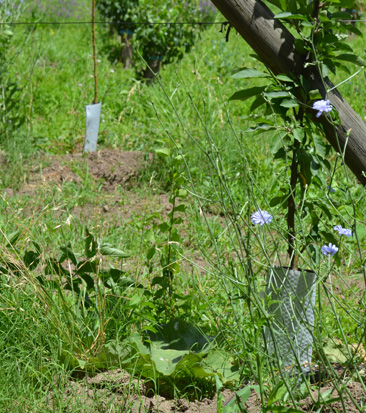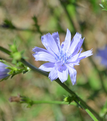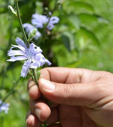 Nuestra flor es la de la achicoria. Con el verano, florecen millares de pinceladas violetas por todos lados: en las espalderas de los frutales, al borde de las acequias, entre las higueras y los almendros. Ellas llegan para realzar el verde de la alfalfa y atraer la atención de los curiosos que preguntan: "¿Y esa flor cómo se llama?" Pero sólo las miradas más detallistas son capaces de apreciar en esta flor la belleza de lo simple, la hermosura de su tonalidad o la armonía de sus pétalos. Ésta es la flor que nos inspira. Y es la misma que contemplaban nuestros abuelos cuando caminaban estas tierras en busca del mejor sol para plantar sus viñedos.