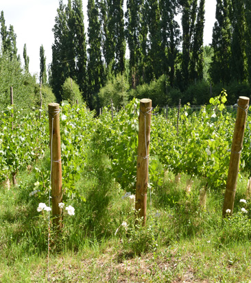 Nuestros viñedos en producción son dos; en la chacra La Morena, crecen las uvas que le darán el espíritu a nuestro Pinot Noir y en la chacra El Puente, plantamos Cabernet Franc y Malbec. Además, trabajamos nuestra viña con tecnología de última generación. Contamos con un novedoso sistema de conducción de espalderos de alta densidad de 1 por 0.8, y para mantener nuestras plantas siempre verdes y vigorosas, hacemos uso de riego mecanizado, con goteros individuales de 2 lt/h.